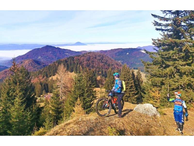 Cu bicicletele noastre electrice puternice, nici macar nu veti simti diferenta de altitudine de 400 m. Privelisti spectaculoase ale tuturor muntilor din jur, poieni mici pentru odihna si fotografiere, pedalare pe un drum forestier umbrit totul intr-o experienta de neuitat de 3 ore.