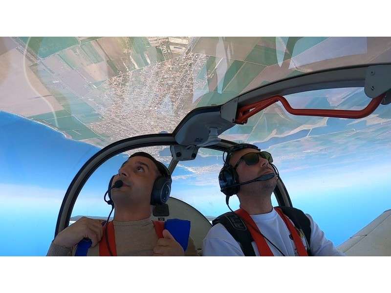 Decolati impreuna cu pilotul instructor de acrobatie si urcati la 1500 m.